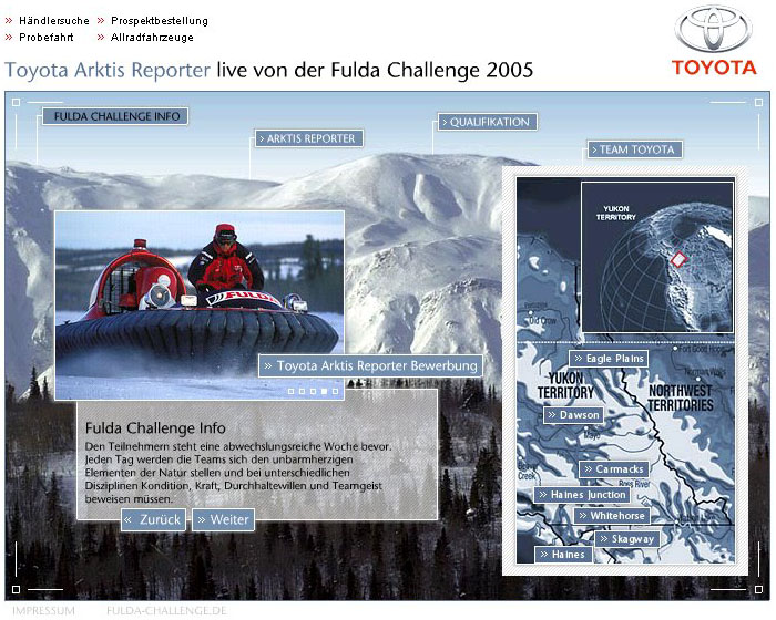 Bei der „Fulda-Challenge” sandte Toyota zwei Reporter mit in die Arktis, die auf dieser Website über ihre Abenteuer berichteten.